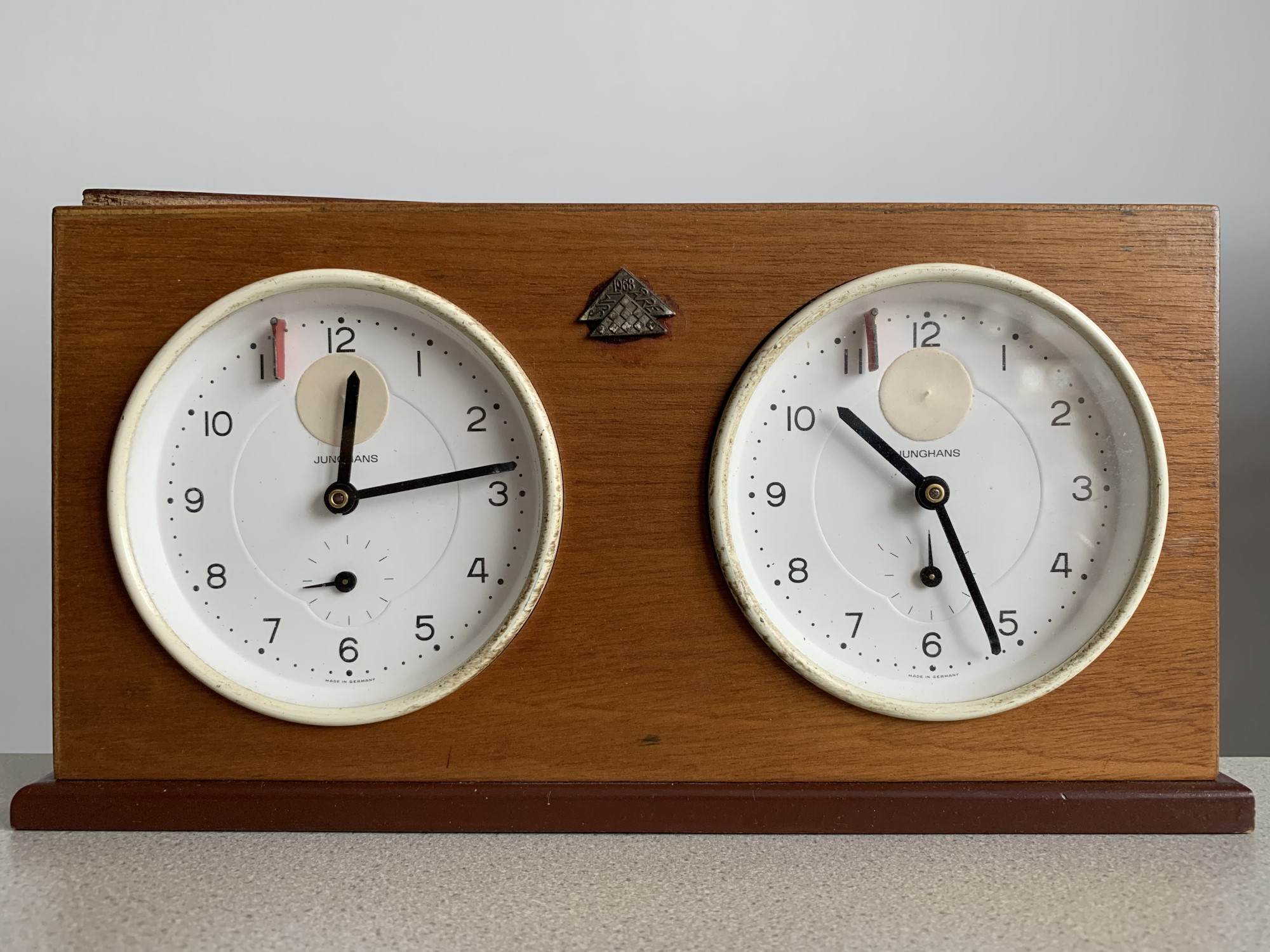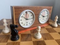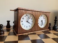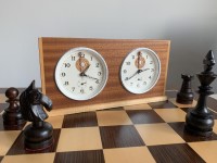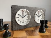 Second generation of the Swedish 'Tower Clock'. This time the case is from plastic; instead of the Jungahs W.783 movements PA Caliber (joint production of German “Peter Uhren” and French 'Jaz') has been used. First evidence of this clock appears in a Swedish Chess Magazine 1976, clocks were produced until 1990xx (if not later). Widely used in Sweden in all types of chess clubs and events. This model has been also used in a 6-games match between M.Tal and U.Andersson (Malmo, 1983) to determine one of the reserve spots in the 1983-84 FIDE Candidates’ cycle (result 3:3). |