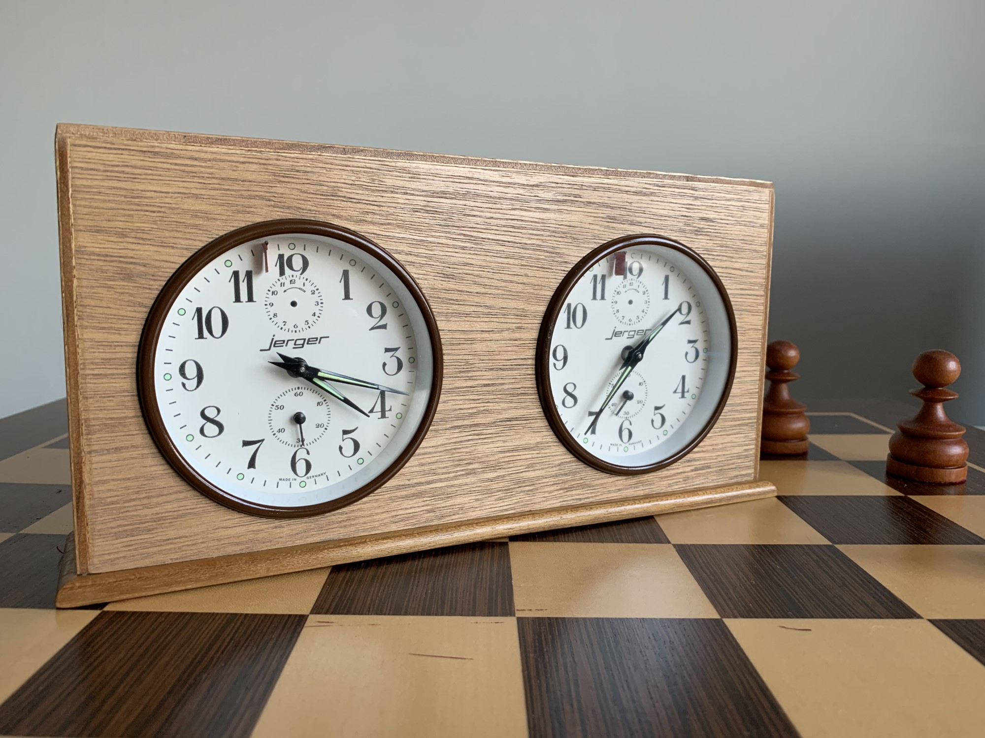 Later version of classical swedish pushbar chess clock, this time with the Jerger movements. This is might be the original alarm clock, used as the basis for the "swedish jerger" model. |