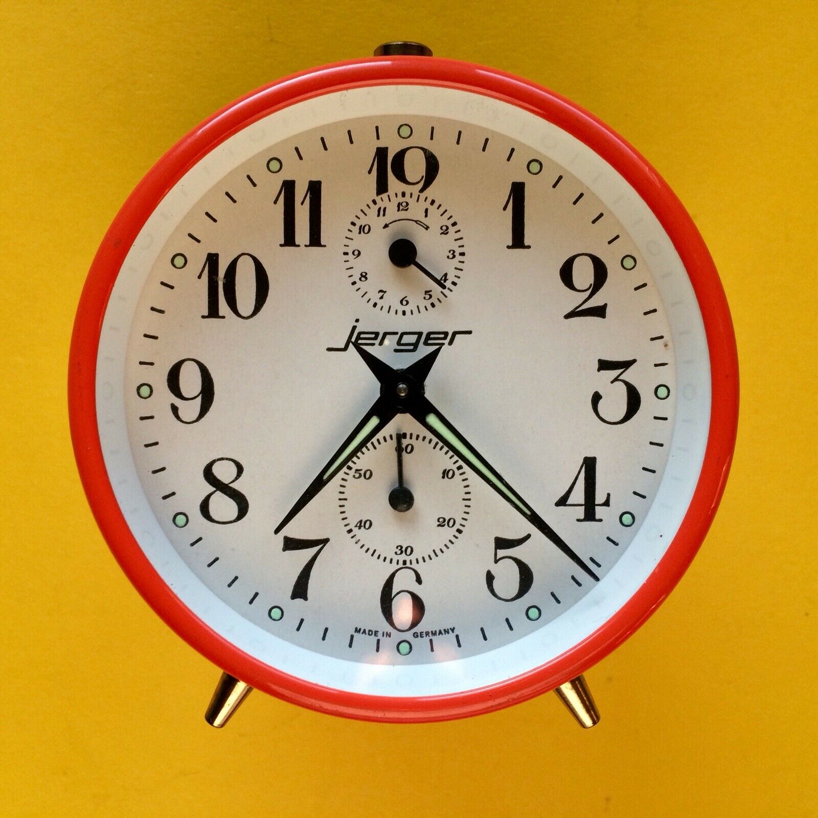 Pink Pushbar - 1st Generation (1950s) one of the earliest Swedish prototype of pushbar system. Characterised by three features: - wooden cover plate from the rear side, which should be opened to wind the clock or set the hands - heavily protruding white metal rings around the dials on the front - Kaiser movements with a stamp from 1950s Pink Pushbar - 2nd Generation (1960s) - no need to open any wooden plate, all knobs are straight available - only slightly protruding white metal rings - Kaiser movements with a stamp already from 1960s - known at least in 2 versions: with a traditional flag and a ´high-precision´ one (slightly longer, allowing measurements on the 1-minute level for the last 5 minutes) Pink Pushbar - 3rd Generation (1970s) very similar to the 2nd Generation, however a '3-stars' Logo on the dial defines "Peter Uhren" as a movement manufacturer, logo 'Jaz' on the movement (btw, it’s so-called PA Caliber) refers to the 1970s - eventual clock manufacture date (German 'Peter Uhren GmbH' merged with French 'Jaz SA' in 1967, however from 1975 onwards Jaz SA stagnation started).